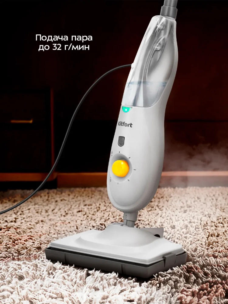 Паровая швабра Kitfort КТ-3933 — универсальное устройство, которое поможет избавиться от пыли и грязи с помощью мощной струи пара, а также продезинфицирует обрабатываемую поверхность. Данный прибор очистит напольные покрытия без каких-либо химических средств — исключительно паром.