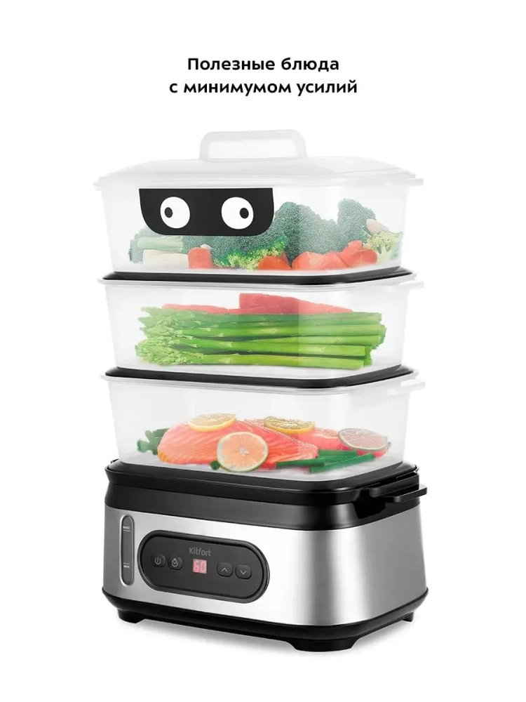 Пароварка Kitfort КТ-4082 приготовит вам вкусные и питательные блюда, сохранив все полезные витамины и микроэлементы, содержащиеся в продуктах. Продукты, приготовленные в пароварке, получаются нежными, мягкими и сочными. Пароварка станет надежным помощником для всех, кто питается диетическими блюдами и просто беспокоится о правильности своего питания.