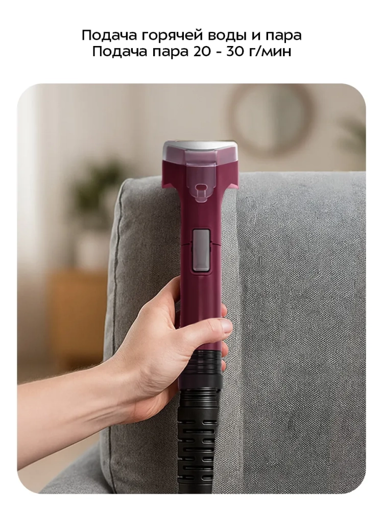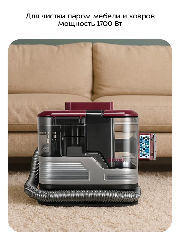 Паровой моющий пылесос для ковров и мягкой мебели Kitfort KT-5587 поможет очистить обивку дивана, кресел, сидений в машине и другой мягкой мебели, а также ковры и ковровые покрытия. Пылесос автоматически подает чистую воду или пар на очищаемую поверхность, а затем всасывает воду с пылью и другими загрязнениями. Пыль и грязь оседают в воде в резервуаре для грязной воды.