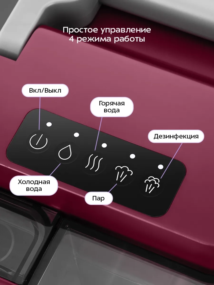 Нагревательный элемент позволяет подавать на очищаемую поверхность горячую воду или проводить очистку паром. Это повышает чистящий эффект и позволяет удалить въевшиеся загрязнения. Для дезинфекции паром предусмотрен специальный режим, в котором только подается пар, а пылесос не всасывает загрязнения. Горячий пар под давлением может убивать патогенные микроорганизмы, бактерии и пылевых клещей, которые могут вызывать аллергические реакции и астму.