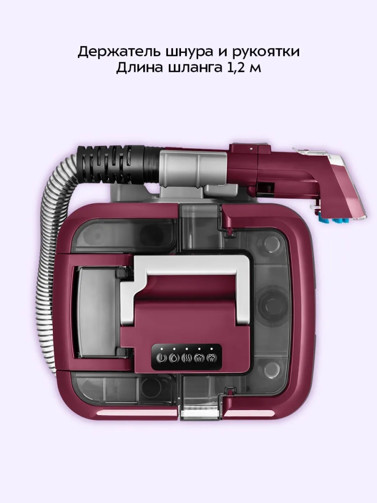 Чистить моющий пылесос очень легко, так как насадку и резервуары можно снять и промыть проточной водой. Также в комплект входит специальная насадка для очистки шланга.