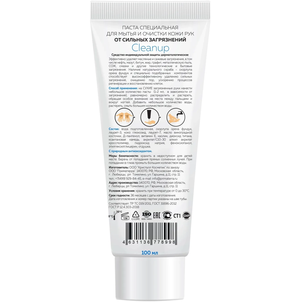Паста очищающая М SOLO Cleanup для рук с натуральн 100 мл