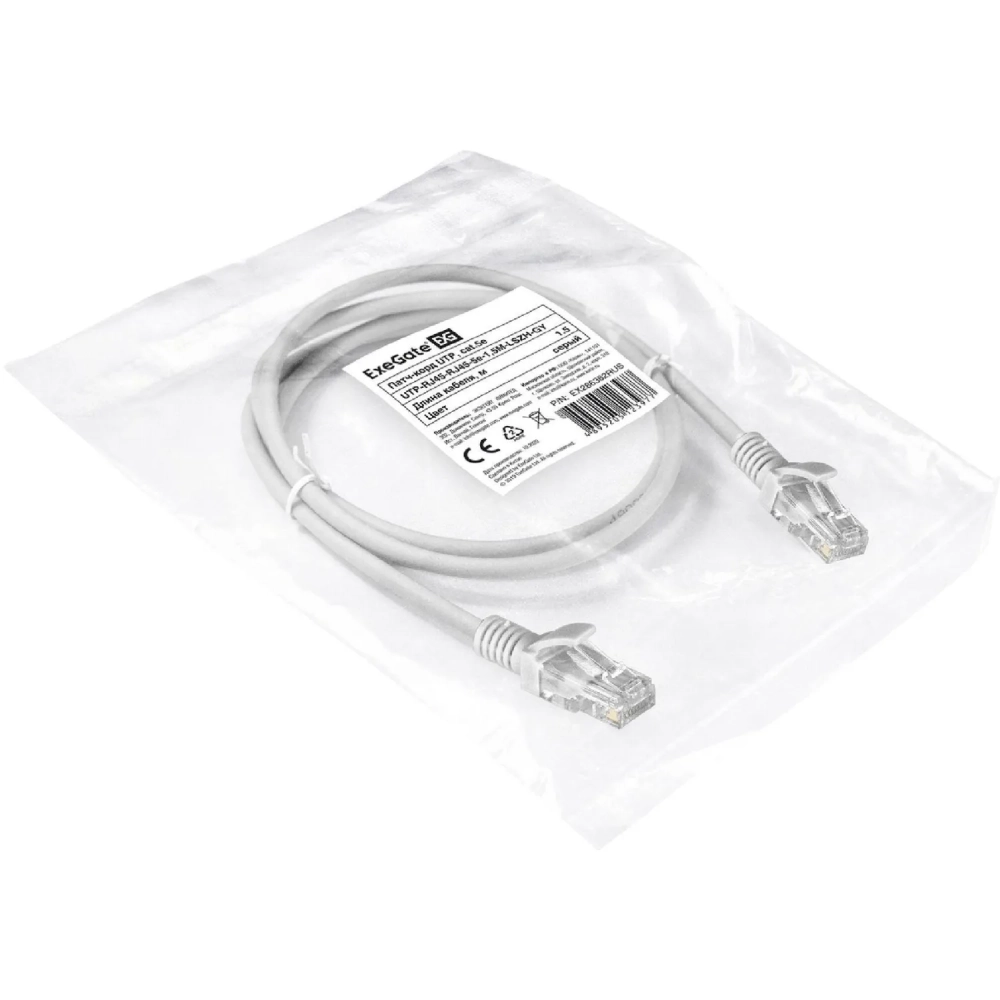 Патч-корд ExeGate UTP-RJ45-RJ45-5e-1,5M-LSZH-GY, cat.5e, 1.5м <EX286382RUS