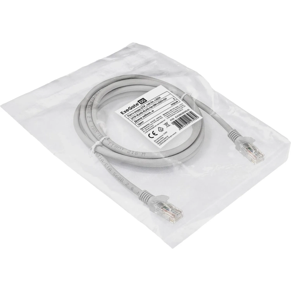 Патч-корд ExeGate UTP-RJ45-RJ45-5e-2M-LSZH-GY, cat.5e, 2м,сер <EX286383RUS
