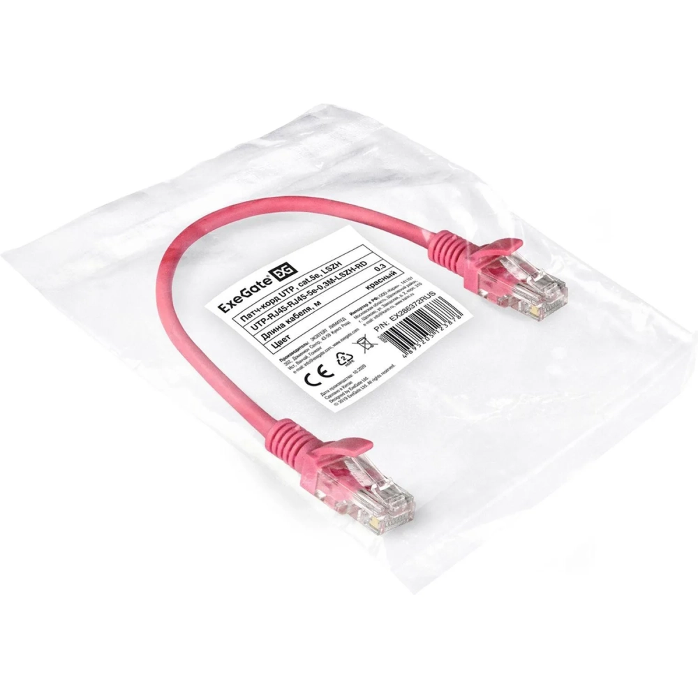 Патч-корд LSZH ExeGate UTP-RJ45-RJ45-5e-0,3M-LSZH-RD, UTP, cat.5e, 0.3м, кр