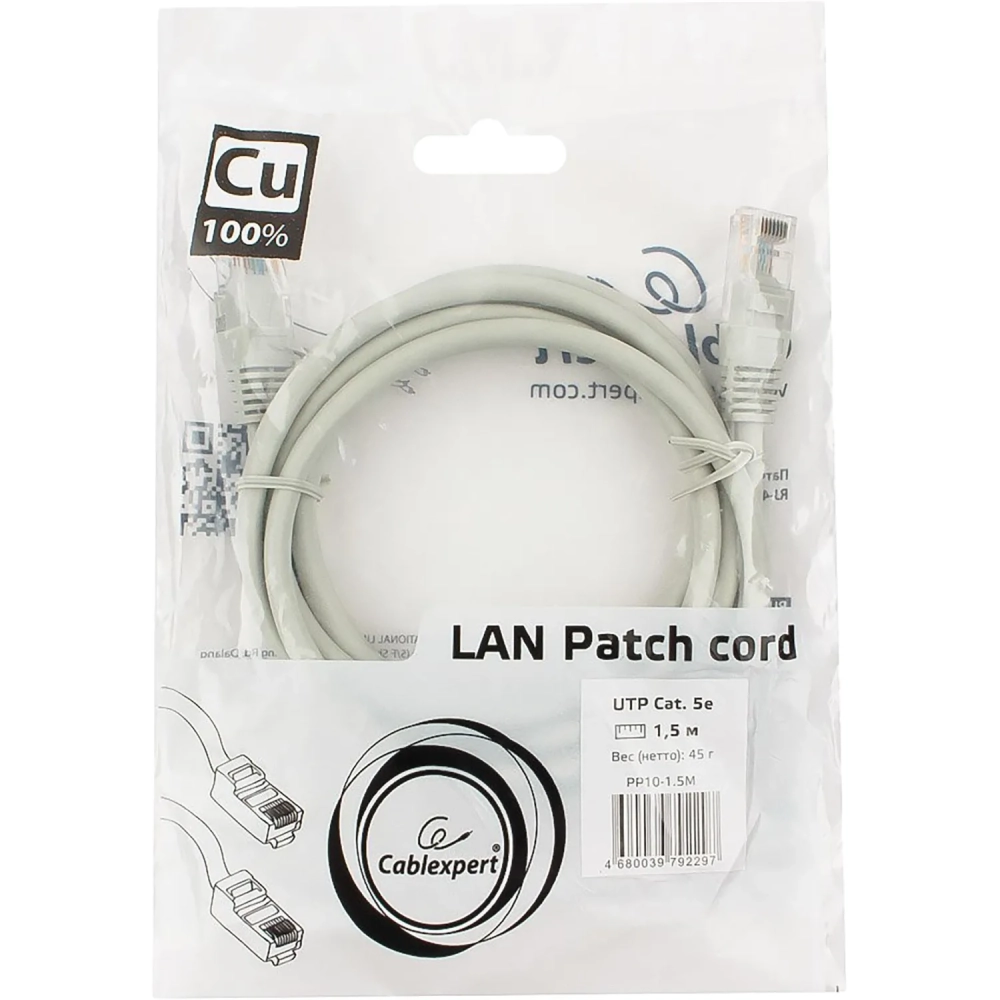 Патч-корд UTP Cablexpert PP10-1.5M кат.5e, 1.5м, литой, (серый)