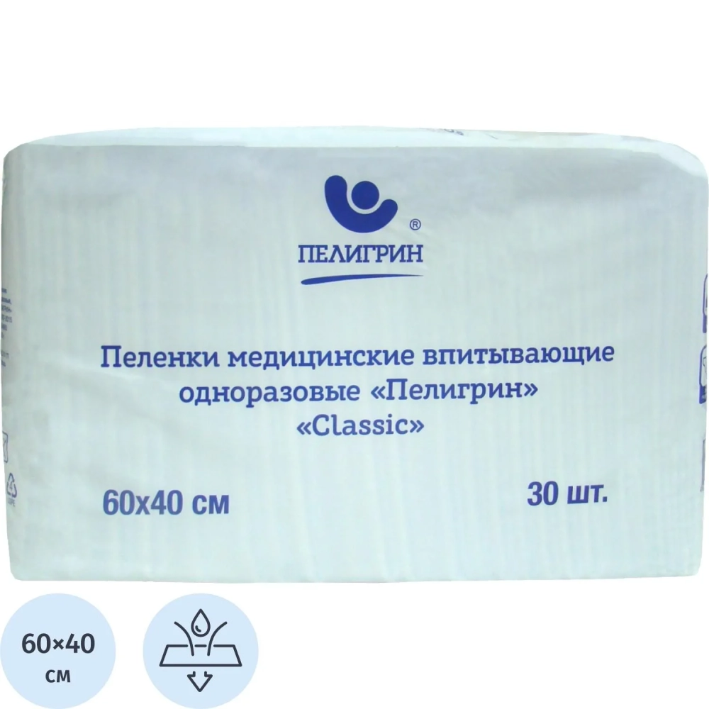 Пелёнка впитывающая Пелигрин 60х40см, Classic, 30шт/уп (М60х40/30С)