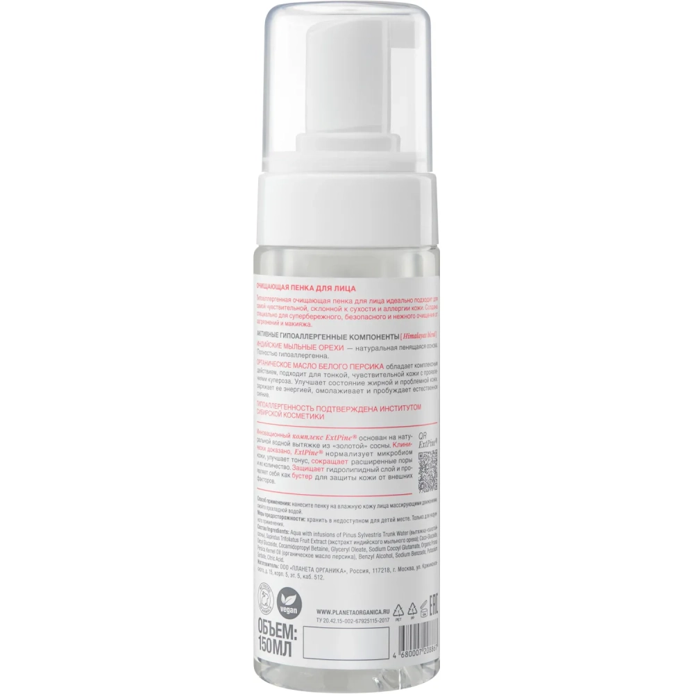 Пенка для умывания лица очищающая Planeta Organica / Pure / Р / 150 мл
