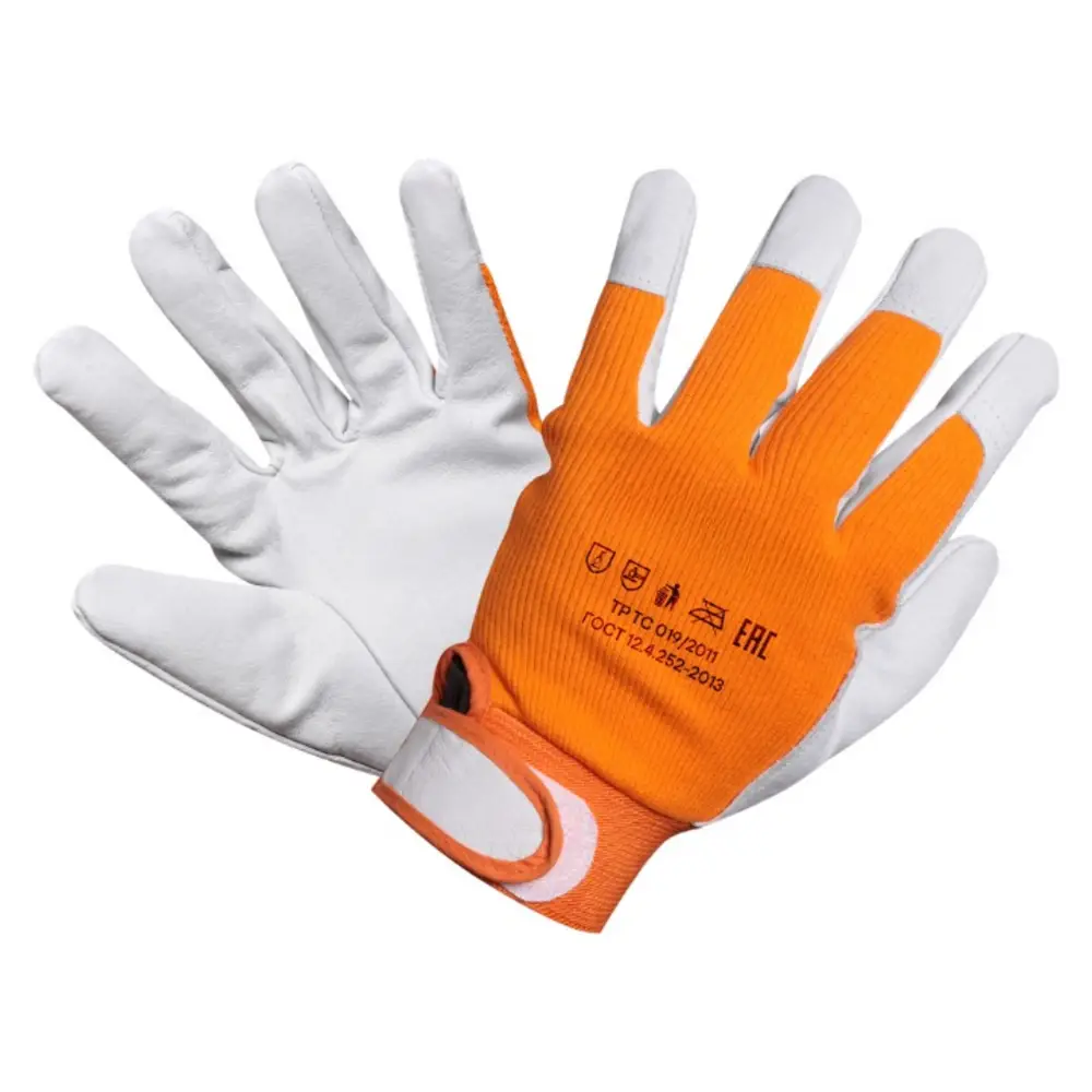 Перчатки предназначены для защиты рук от механических воздействий (проколов, порезов). Ладонь и пальцы перчаток изготовлены из натуральной козьей кожи мягкой выделки, что придает им высокую чувствительность и повышенную комфортность при работе с мелкими деталями. Внешней сторона ладони выполнена из хб трикотажа с тянущимися свойствами. Манжеты оснащены удобными застежками на липучке, предотвращающие спадание перчаток.
