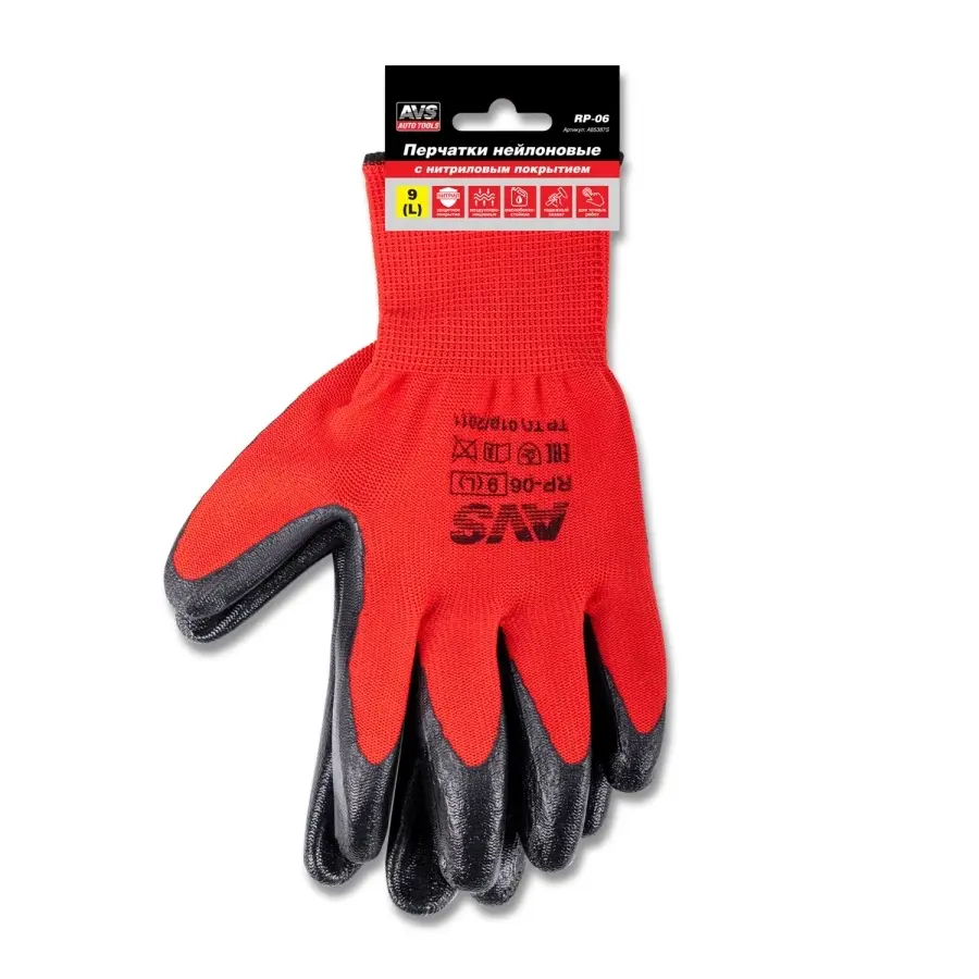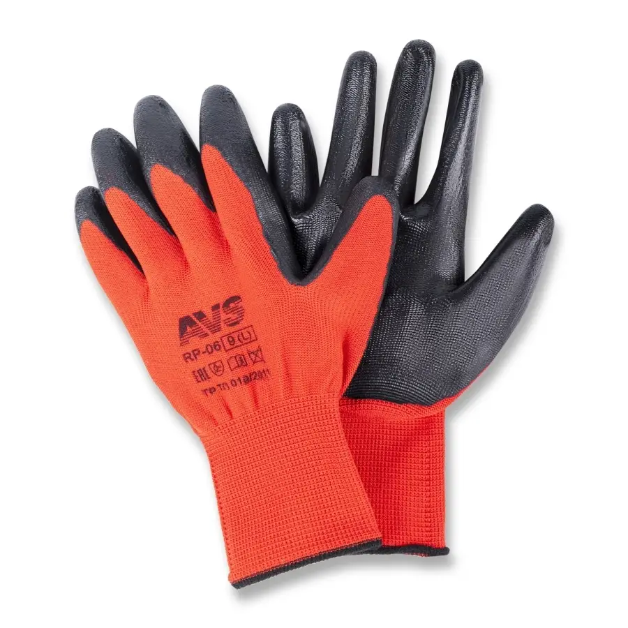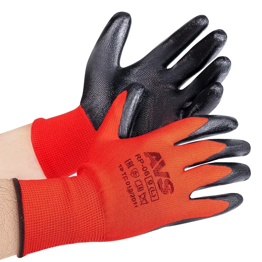 Перчатки нейлоновые с нитриловым покрытием МБС для точных работ (красно-черные) 1 пара AVS RP-06