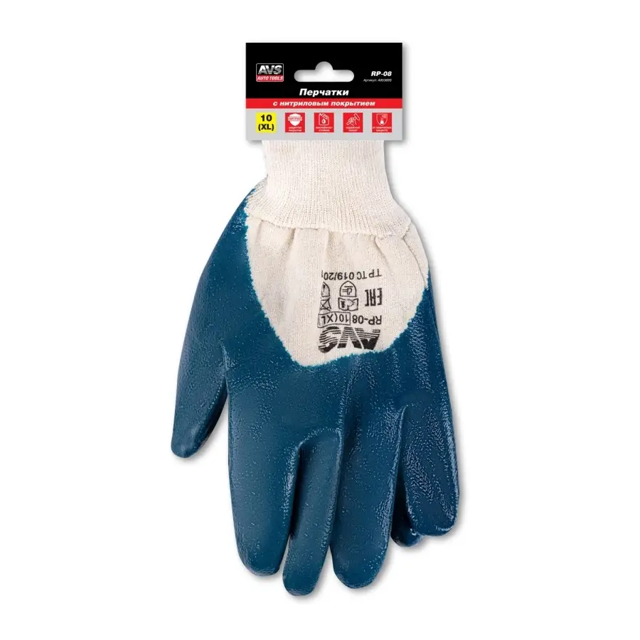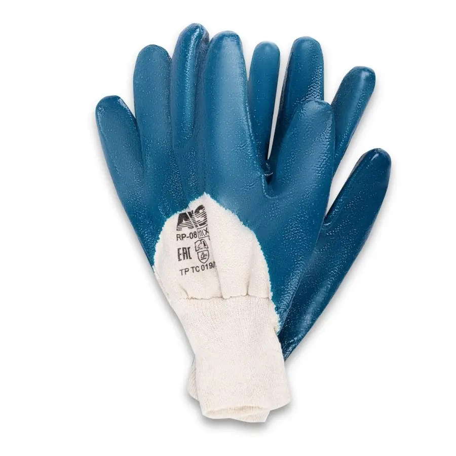 Перчатки нитриловые обливные МБС (синие, резиновая манжета) 1 пара AVS RP-08