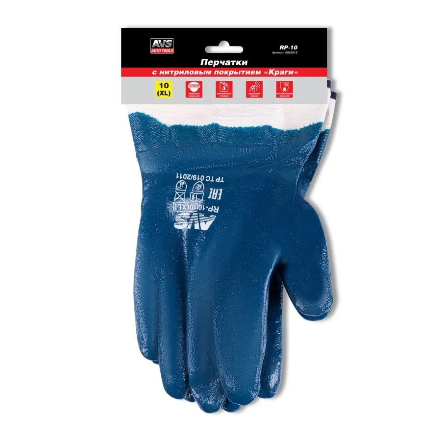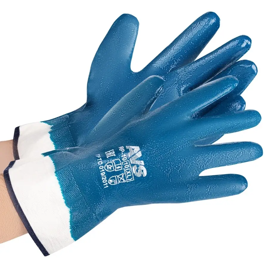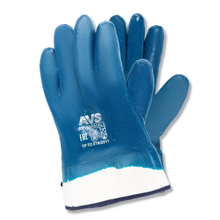 Перчатки нитриловые полный облив МБС (синие, краги) 1 пара AVS RP-10