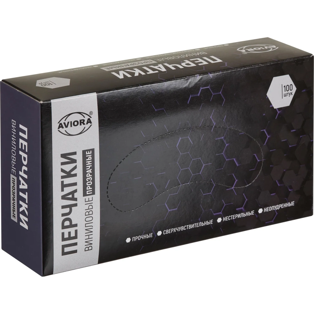 Перчатки однораз. виниловые, н/о, прозр. AVIORA (S) 50п/уп 5,5гр 402-637 ПС