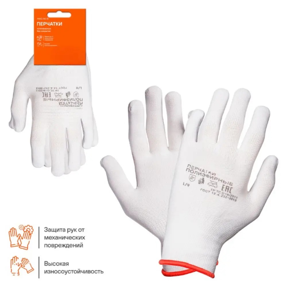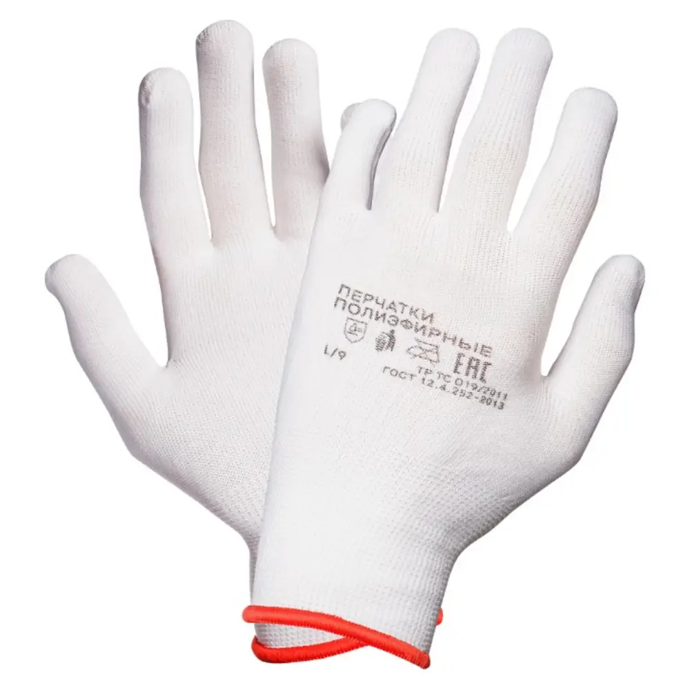 Применяются для защиты кистей рук от механических воздействий (истирания). Перчатки изготовлены из тонкого 100% полиэфира белого цвета, схожего с нейлоном. Перчатки отлично облигают руку, что повышает чувствительность и позволяет работать с мелкими предметами.