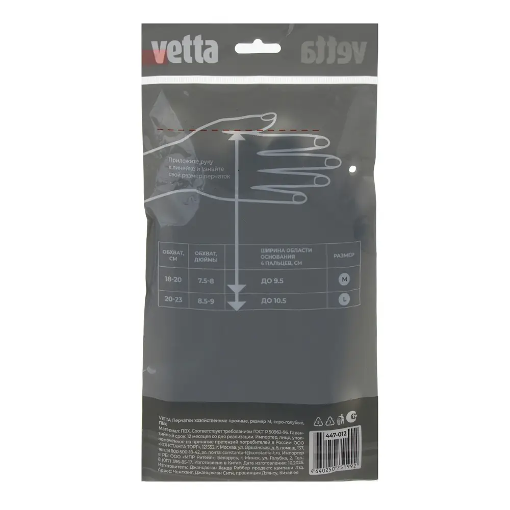 Перчатки хозяйственные VETTA — незаменимый помощник для тех, кто ценит качество и комфорт. Они изготовлены из прочного материала ПВХ, который обеспечивает надёжную защиту рук от воды, грязи и химических веществ. Перчатки имеют универсальный размер М, который подходит большинству людей. Легко надеваются и снимаются, не сковывают движений и не вызывают дискомфорта. Перчатки хозяйственные VETTA станут вашим верным спутником в любых делах.