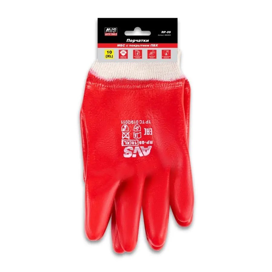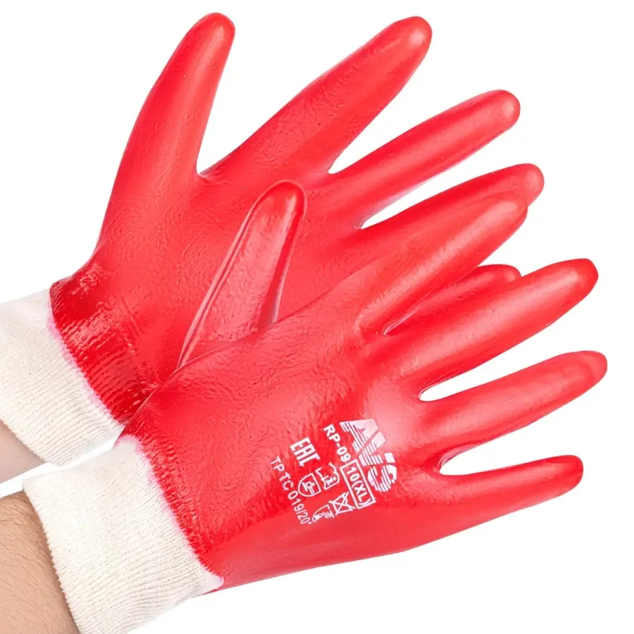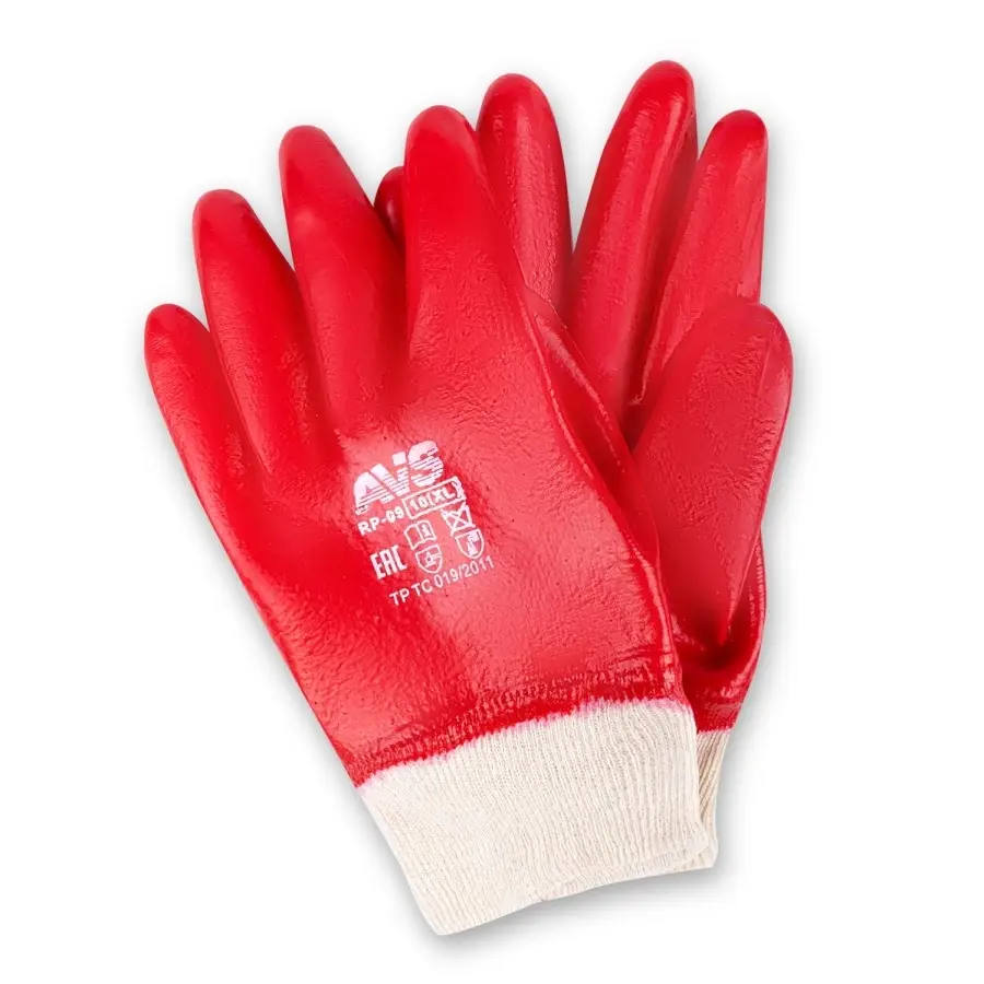 Перчатки ПВХ полный облив МБС (красные, резиновая манжета) 1 пара AVS RP-09