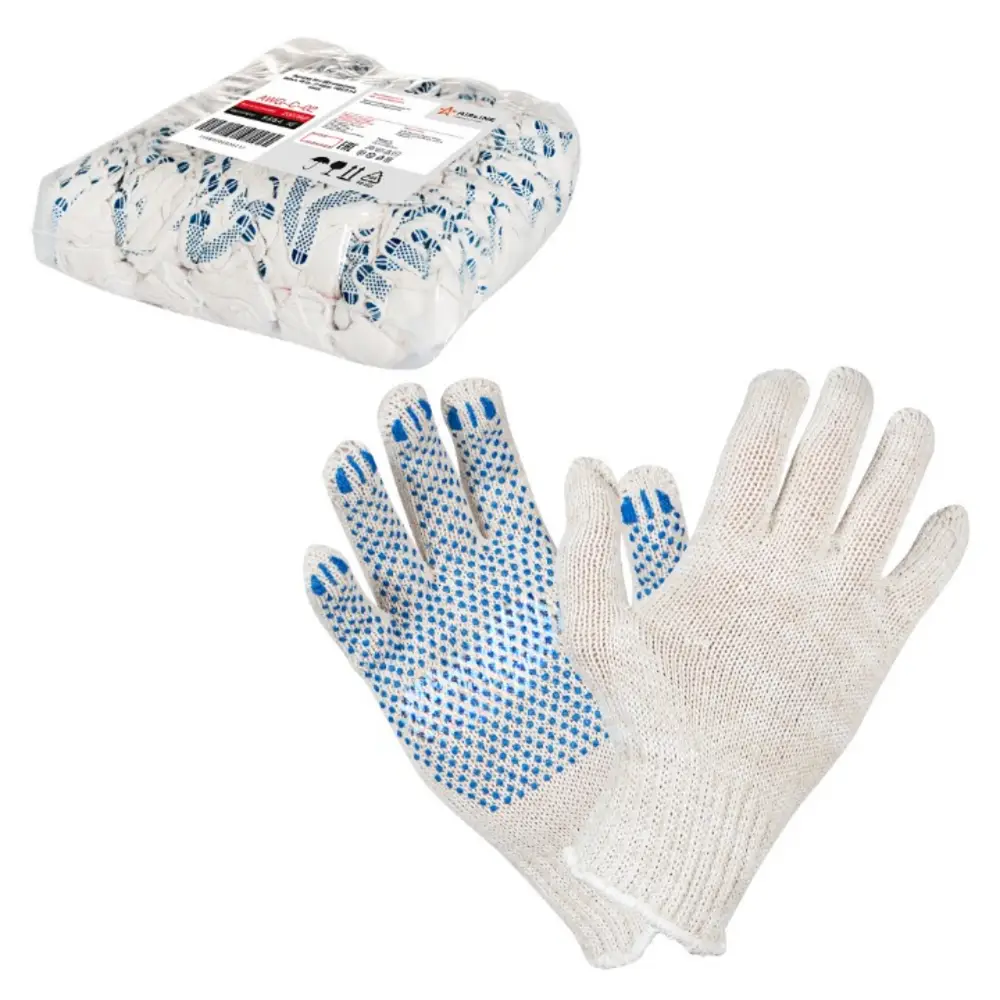 Данная модель перчаток сочетает в себе демократичную цену и гарантированные качественные показатели. Перчатки связаны из ХБ нитей и имеют нанесенное точечное покрытие из ПВХ. Изделие обладает высоким порогом износа, что обеспечивает возможность длительной эксплуатации. В комплект входит пять пар перчаток идентичного размера. Перчатки предназначены для защиты рук от механических повреждений при выполнении работ на производстве, в строительстве и в быту. Точечное покрытие ладони перчаток из поливинилхлорида обеспечивает хорошее сцепление с инструментами и поверхностями, предотвращает проскальзывание рук во время работы.