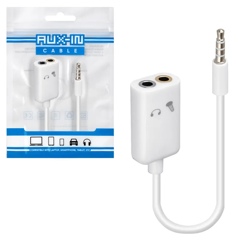 Переходник AUX на 2 AUX (под наушники + микрофон)