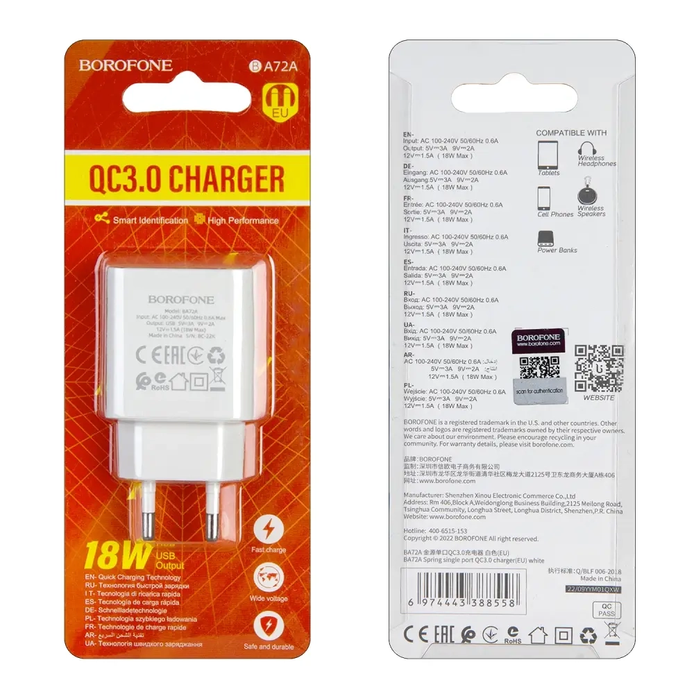 Переходник BA72A СЗУ на USB 18W 3A Borofone белый