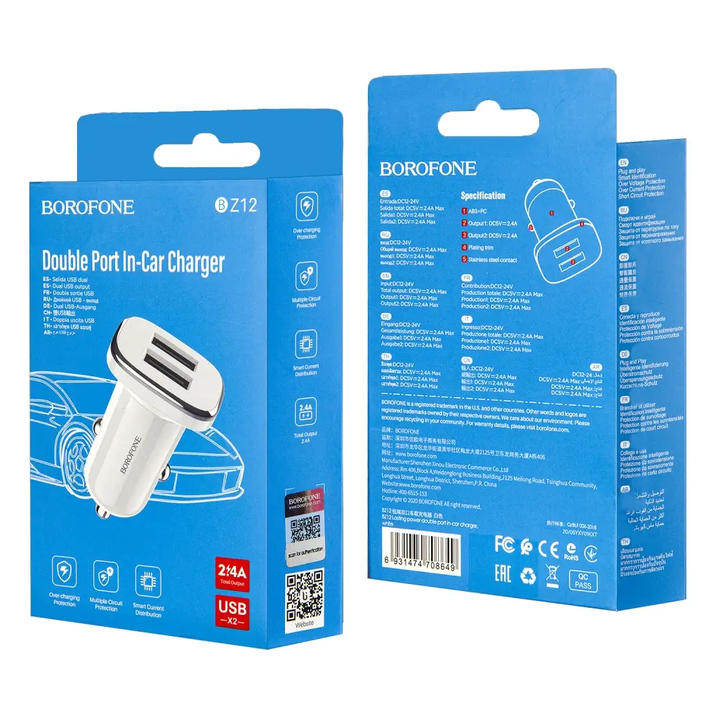 Переходник BZ12 АЗУ на 2 USB 2.4A Borofone белый