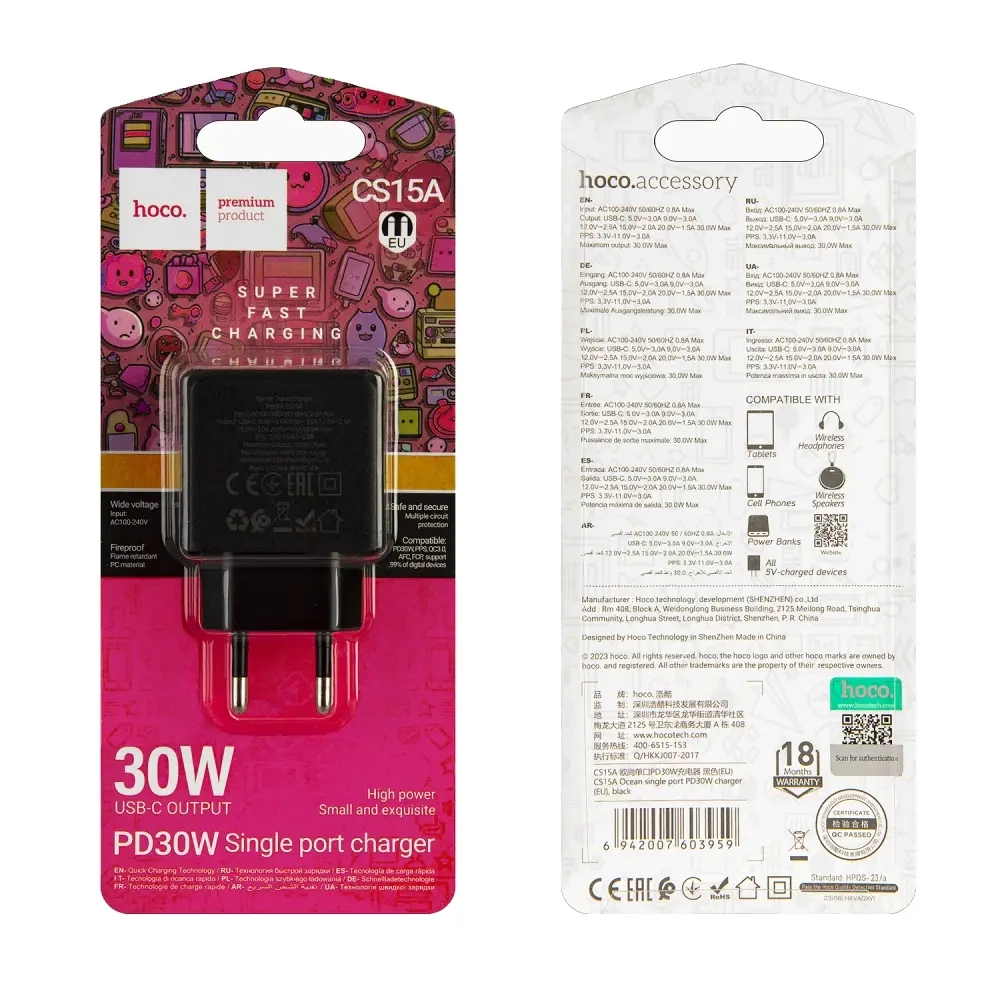 Переходник CS15A СЗУ на Type-C 30W HOCO черный