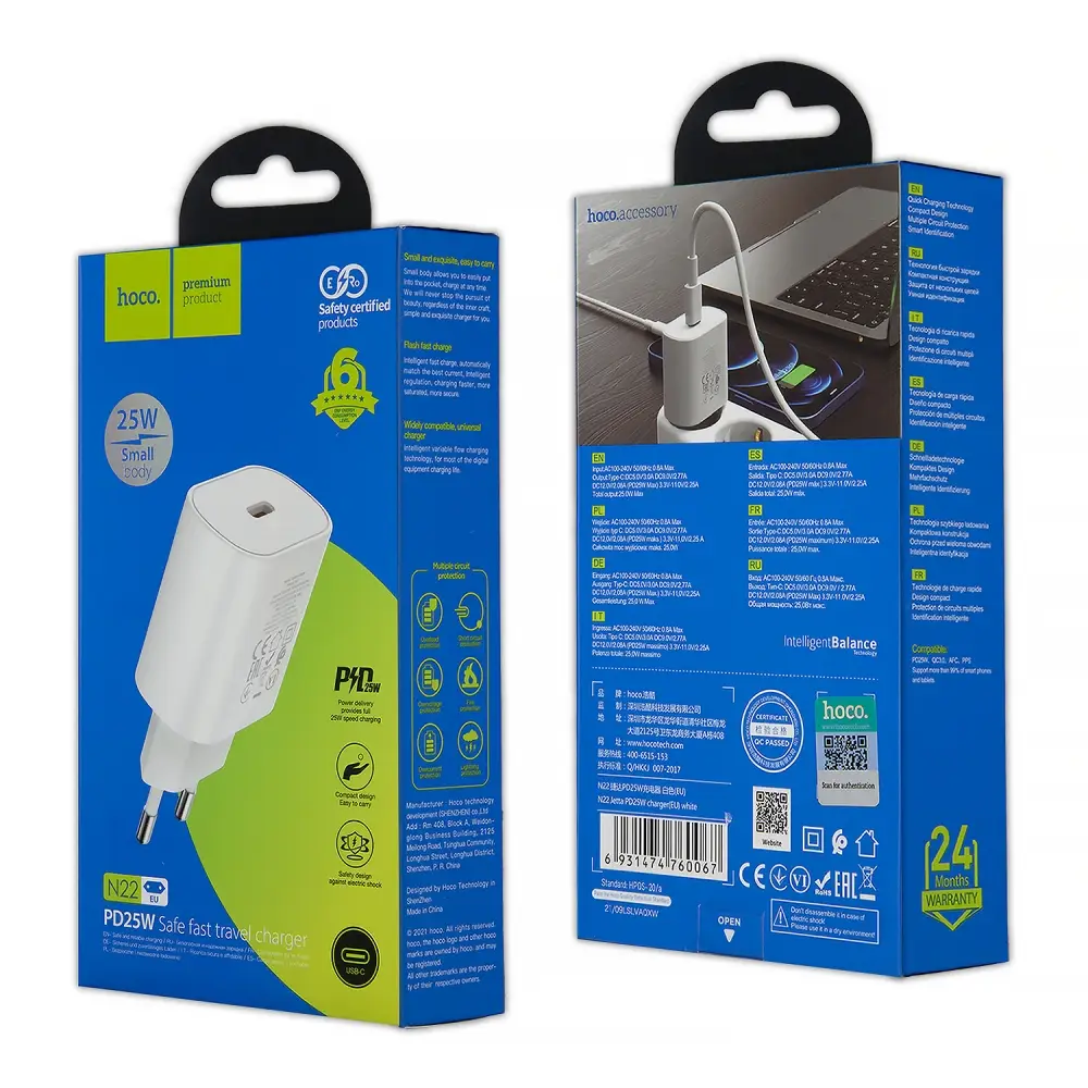 Переходник N22 СЗУ на Type-C PD25W HOCO белый