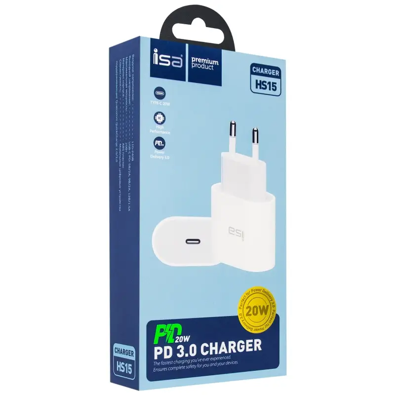 Переходник сетевого зарядного устройства HS15 на Type-C PD20W ISA белый