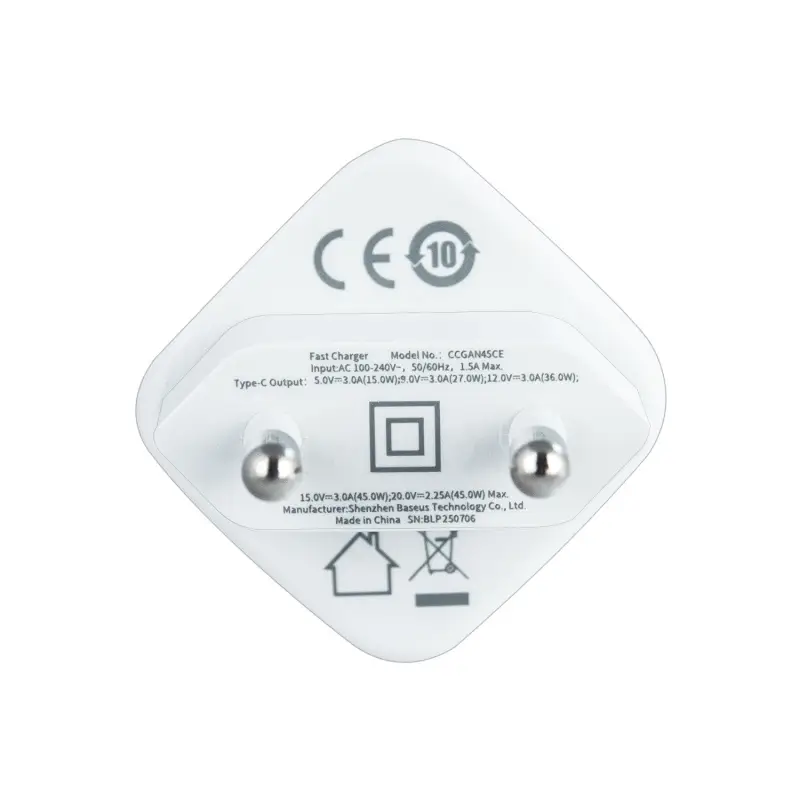 Переходник сетевого зарядного устройства на Type-C 45W GAN P10176800213-00 Baseus белый