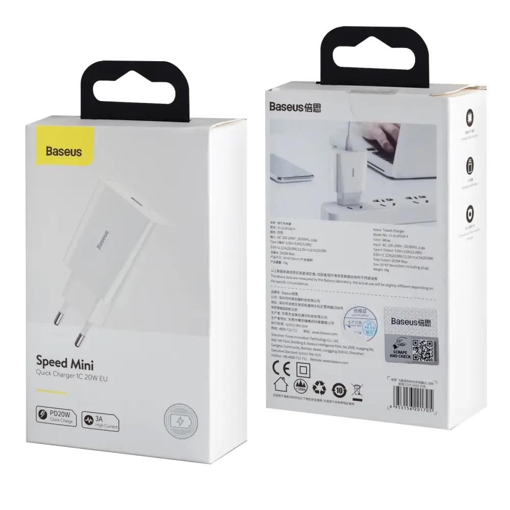 Переходник СЗУ на Type-C PD20W CCFS-SN02 Baseus белый