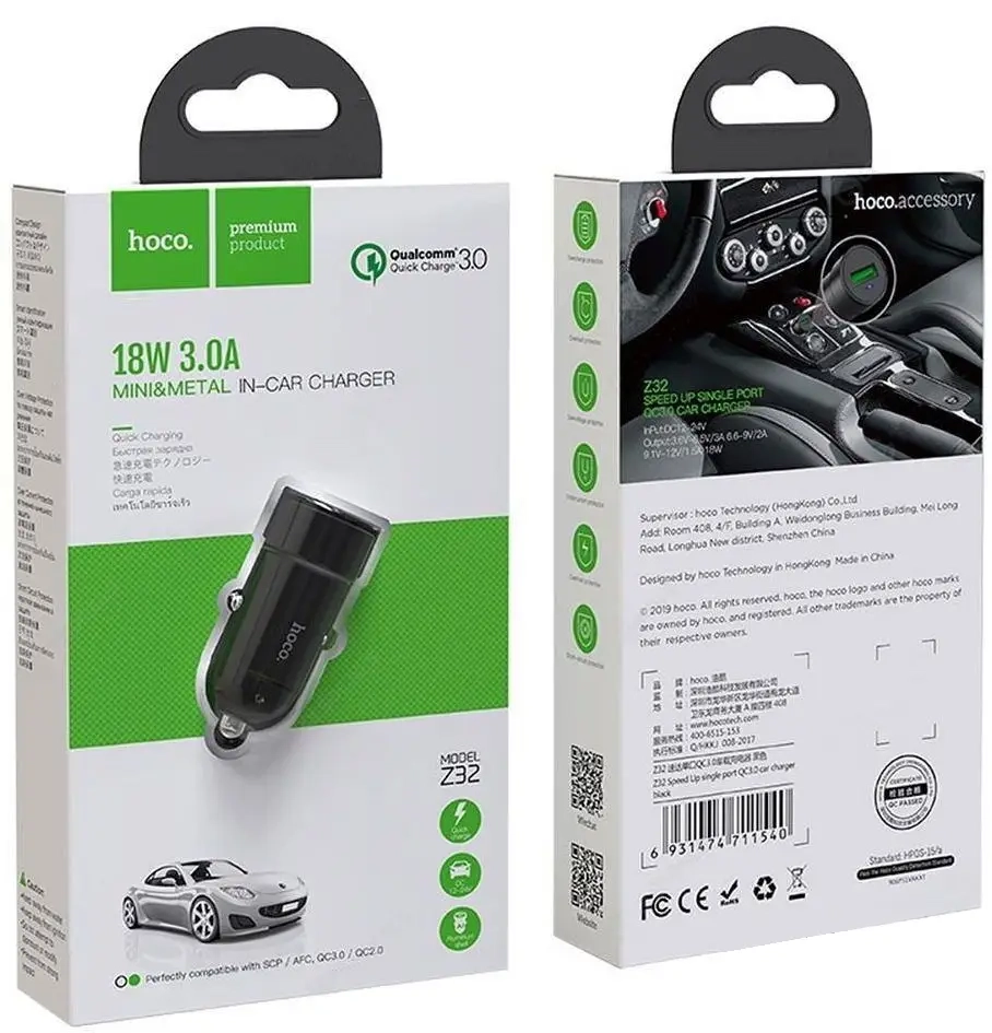 * Переходник Z32 АЗУ на USB 3A HOCO черный