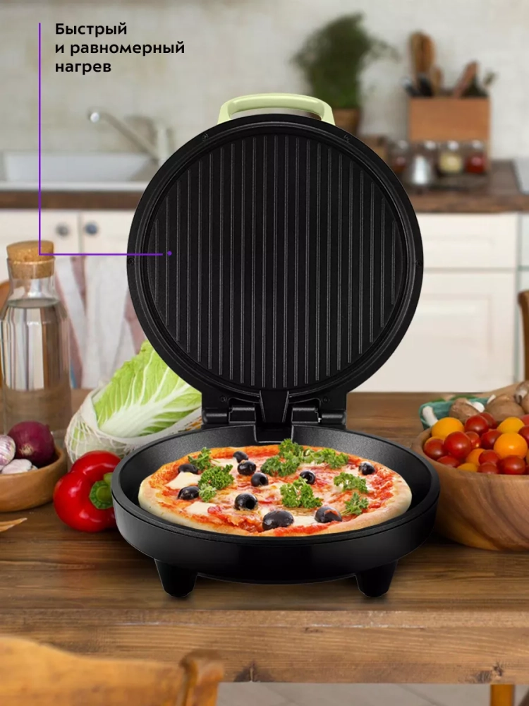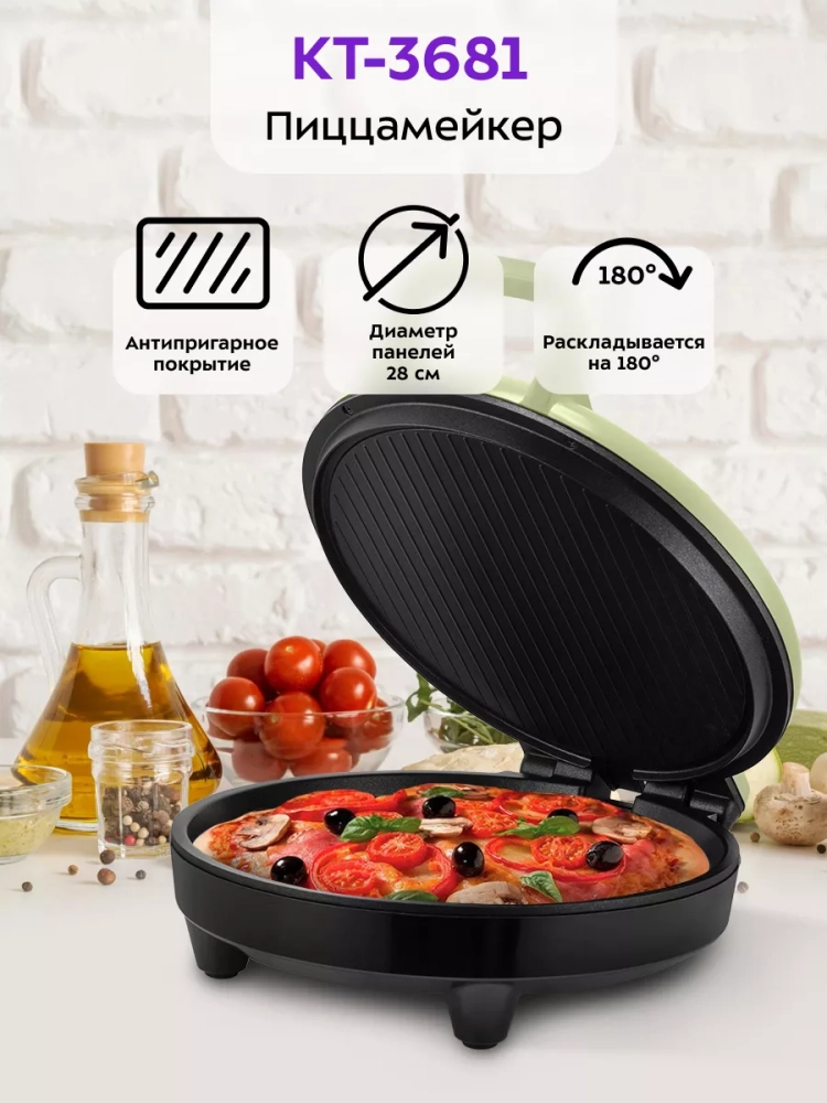 Пиццамейкер Kitfort KT-3681 — универсальное устройство, способное заменить духовку. Идеально подходит для приготовления пиццы, различных пирогов, сырников, горячих бутербродов и запеканок. Также в пиццамейкере можно готовить омлет, запеченные овощи, котлеты, мясо, рыбу и многое другое.