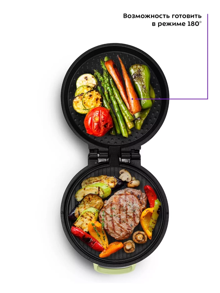 Конструкция пиццамейкера позволяет готовить в двух режимах. В двухстороннем режиме прибор закрывается крышкой. В одностороннем режиме верхняя панель откидывается на 180 °, и пиццамейкер превращается в большую жаровню — для приготовления можно использовать обе панели.