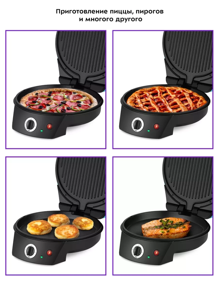 Пиццамейкер Kitfort KT-3689 — универсальное устройство, способное заменить духовку. Идеально подходит для приготовления пиццы, различных пирогов, сырников, горячих бутербродов и запеканок. Также в пиццамейкере можно готовить омлет, запеченные овощи, котлеты, мясо, рыбу и многое другое.