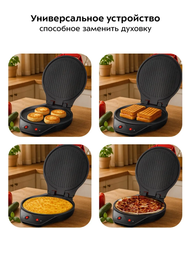 Пиццамейкер Kitfort KT-4650 идеально подходит для приготовления пиццы, различных пирогов, сырников, горячих бутербродов и запеканок. Также в пиццамейкере можно готовить омлет, овощи, котлеты, мясо, рыбу и многое другое.