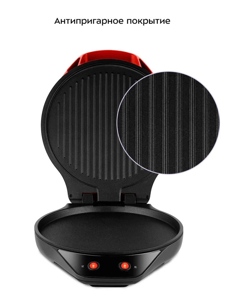 Антипригарное покрытие помогает не прилипать тесту и другим продуктам в процессе приготовления и позволяет готовить с минимальным количеством масла. Также антипригарное покрытие панелей облегчает чистку.