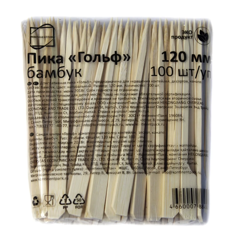 Пика для канапе ГОЛЬФ, 12cм, бамбук, 100 шт/уп