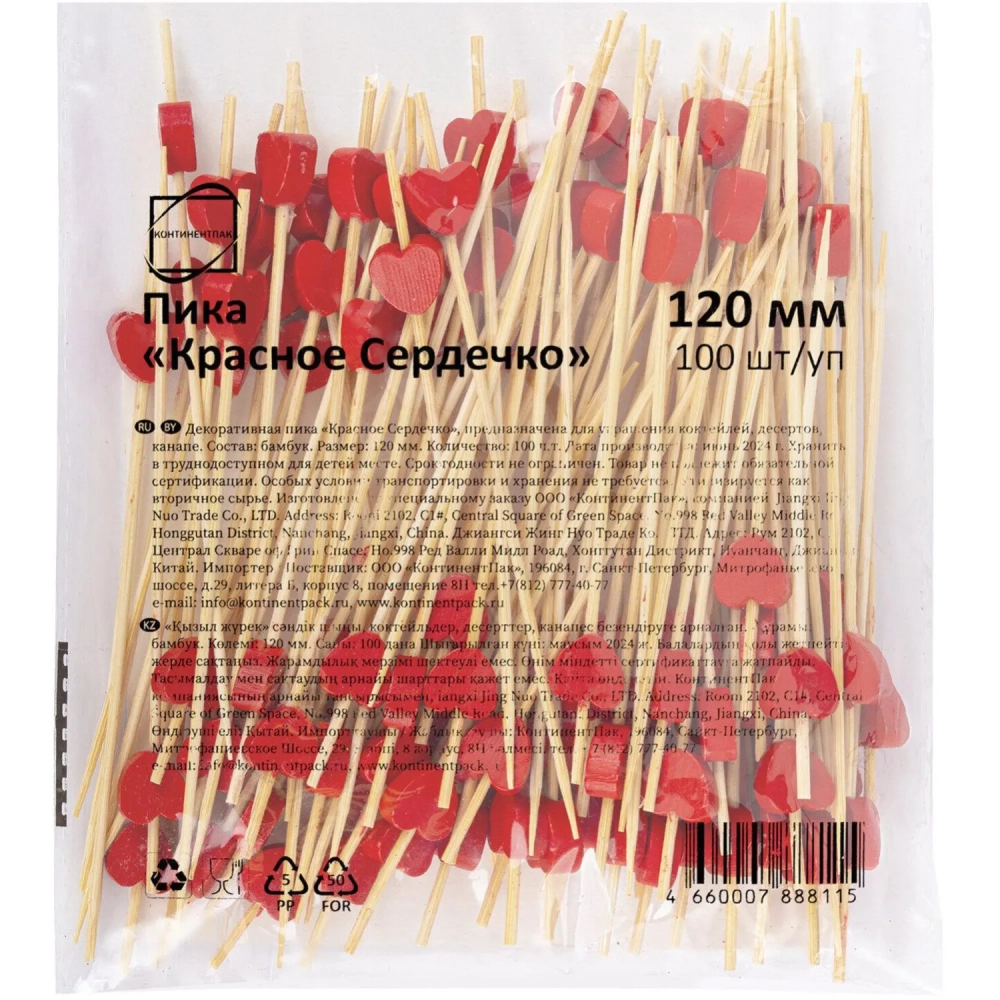 Пика Сердечко Красное 12 см БАМБУК 100 шт/уп