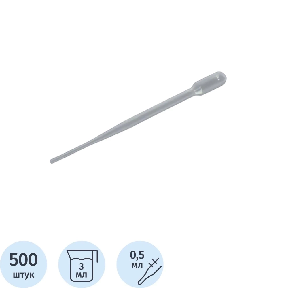 Пипетка Пастера 3мл, 155 мм, нестер, град, 500 шт/уп 4320-0511
