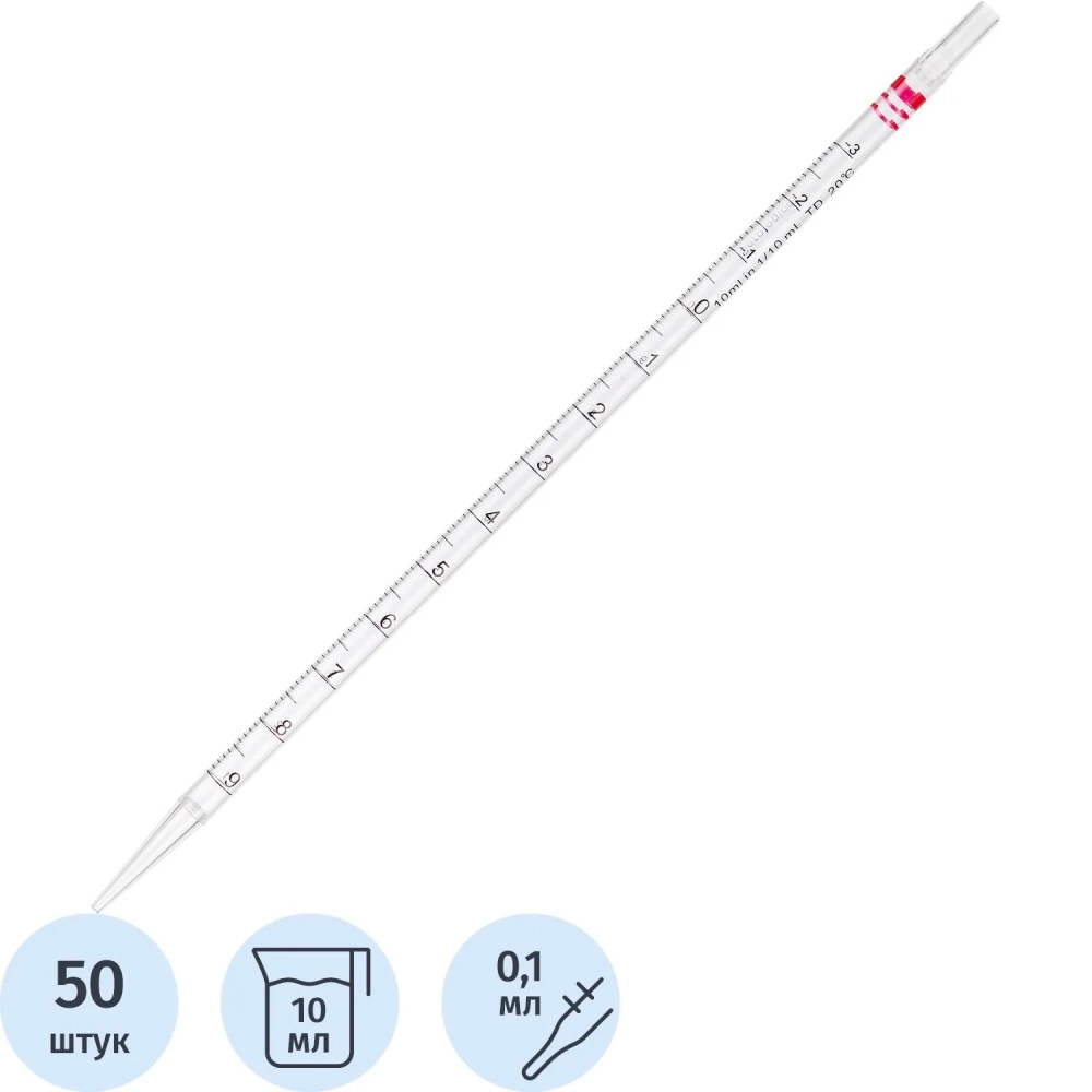 Пипетка серологическая 10 мл, ПС, стер, 50 шт/уп, ИУ 11000912