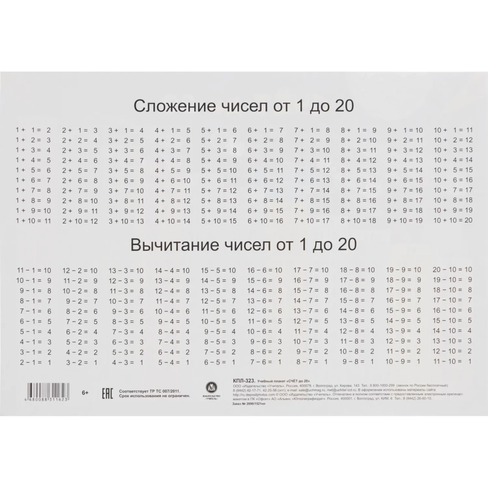 Плакат (наб) Математика. Начальная школа А4 КОМ-121