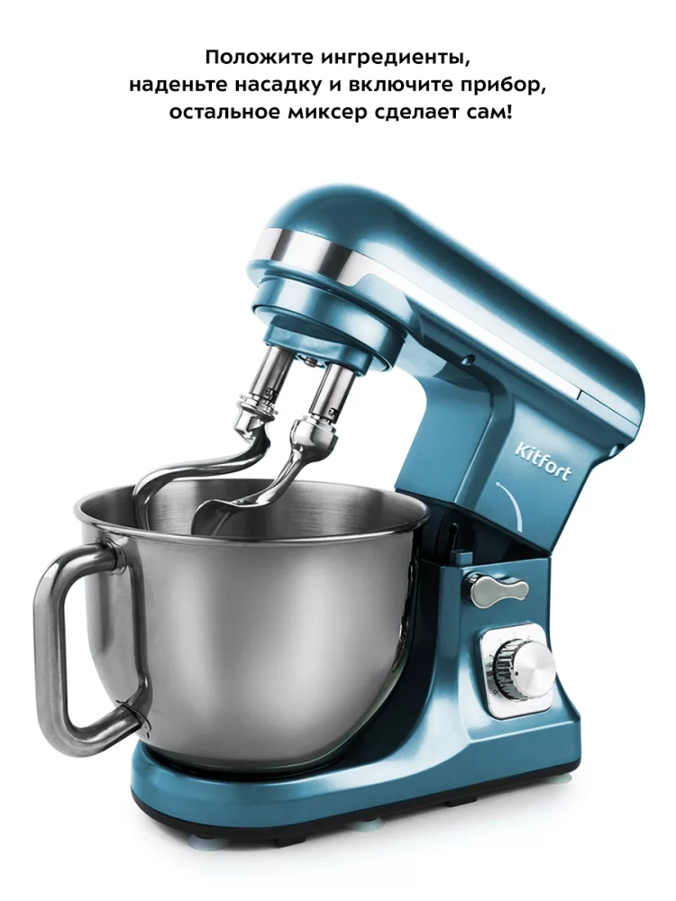 Ультрасовременный и мощный стационарный миксер Kitfort КТ-1343 поможет вам смешать ингредиенты, взбить яйца или сливки, приготовить картофельное пюре, соус, крем, мусс, замесить жидкое тесто для блинов и тугое тесто для пельменей и пирогов.