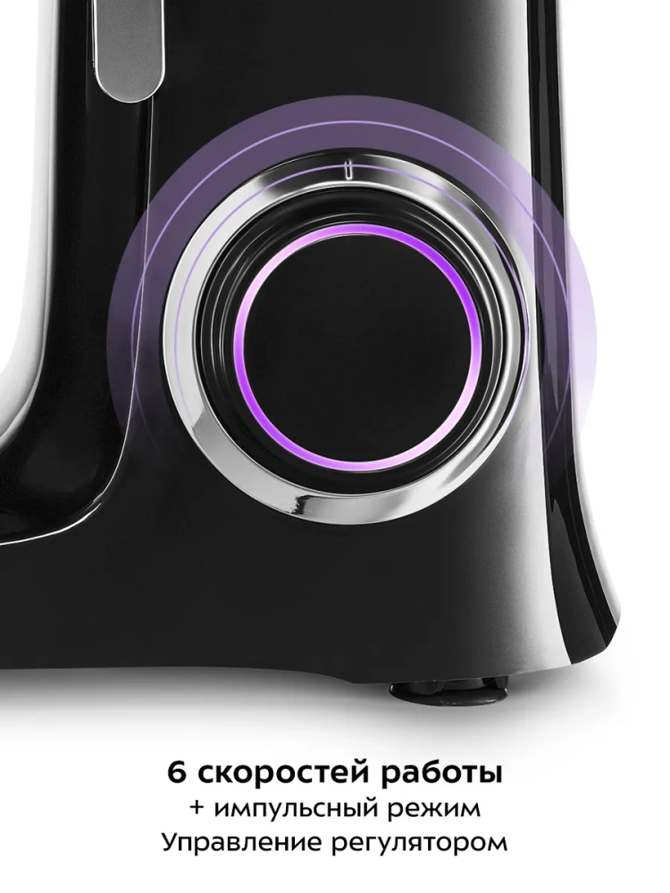 Миксер работает в автоматическом режиме. Вам достаточно только положить ингредиенты, установить подходящую насадку и включить прибор. Миксер позволяет выбрать нужную скорость работы для смешивания ингредиентов, а также установить импульсный режим.
