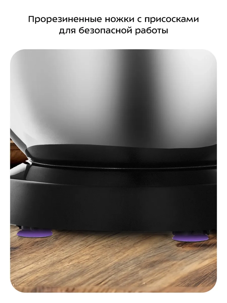 Миксер оснащен планетарной системой смешивания. Надежный двигатель позволяет быстро и эффективно смешивать ингредиенты разной консистенции для самых разнообразных кулинарных целей. Встроенный вентилятор принудительно охлаждает миксер потоком воздуха. Прорезиненные ножки с присосками прочно фиксируют миксер на столе.