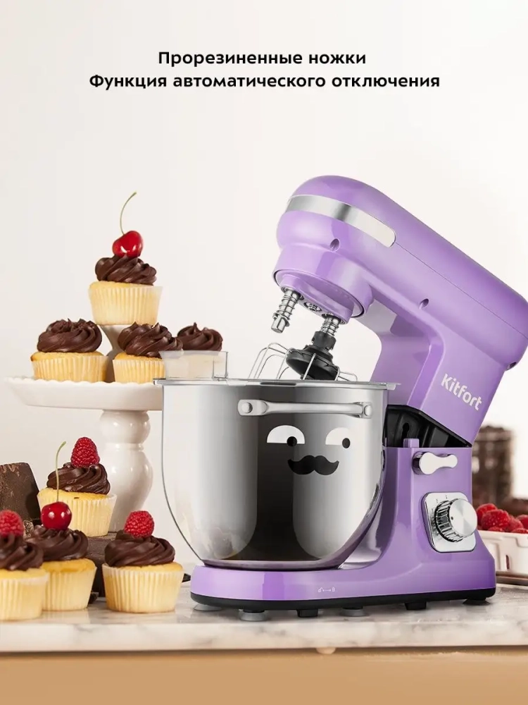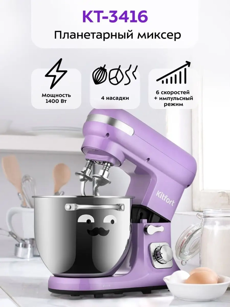 Планетарный миксер Kitfort КТ-3416 поможет вам смешать ингредиенты для любого блюда, взбить яичный белок или сливки, приготовить картофельное пюре, мусс, крем, соус, замесить жидкое тесто для блинов или крутое для пельменей и пирогов.