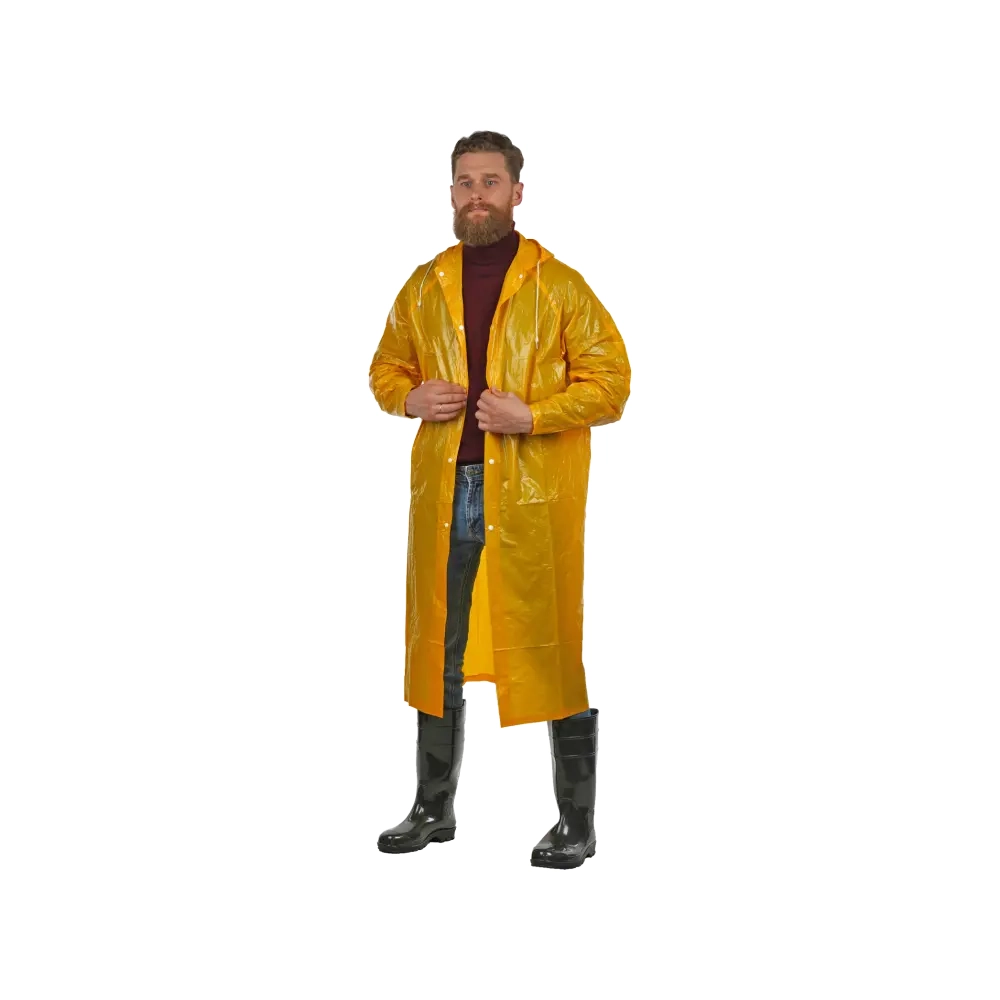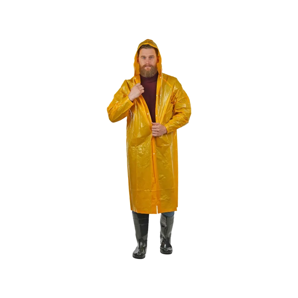 Плащ-дождевик №5 влагозащитный из ПВХ желтый, с капюшоном, для мужчин и женщин р.XXL