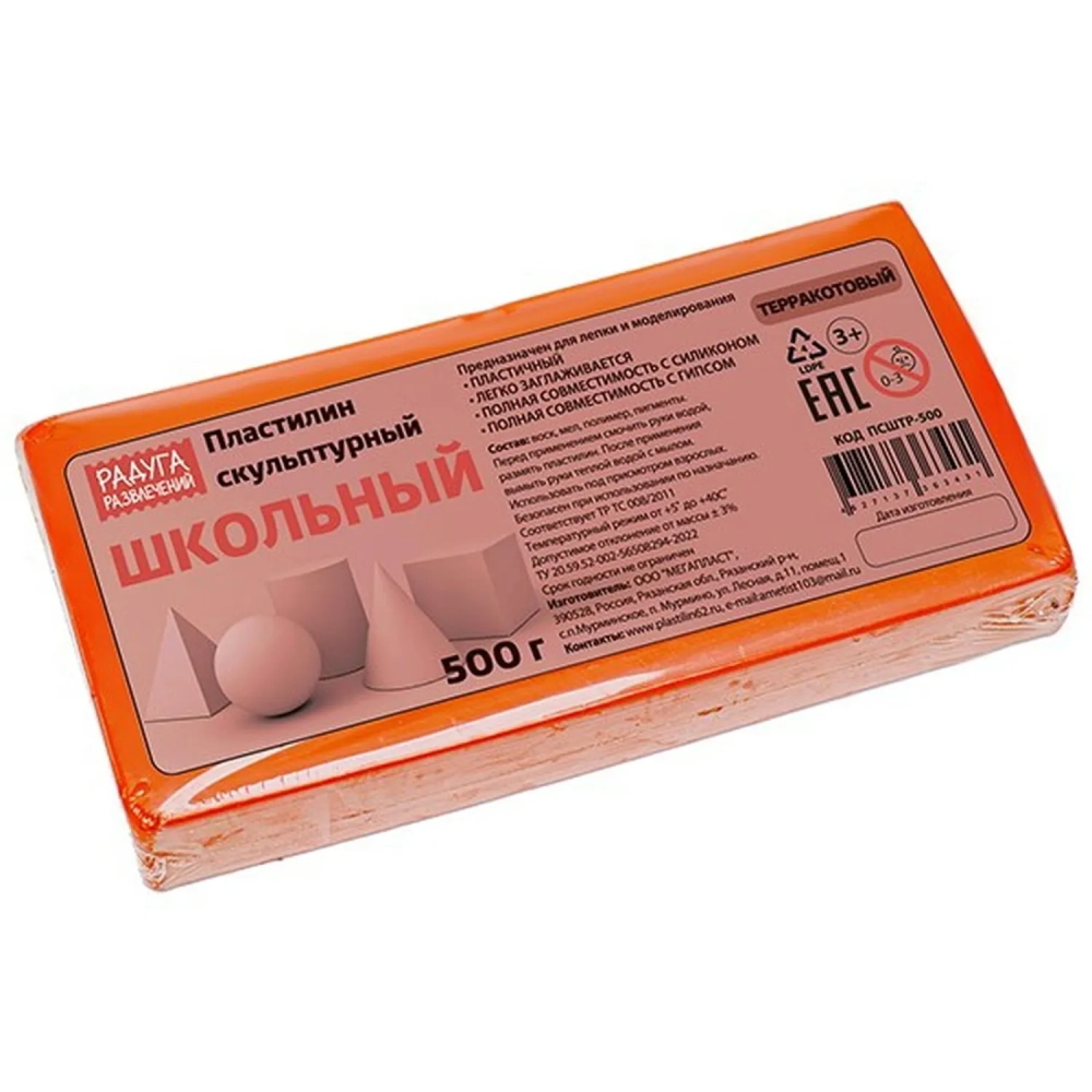 Пластилин скульптурный терракотовый, 500 г, ПСШТР-500