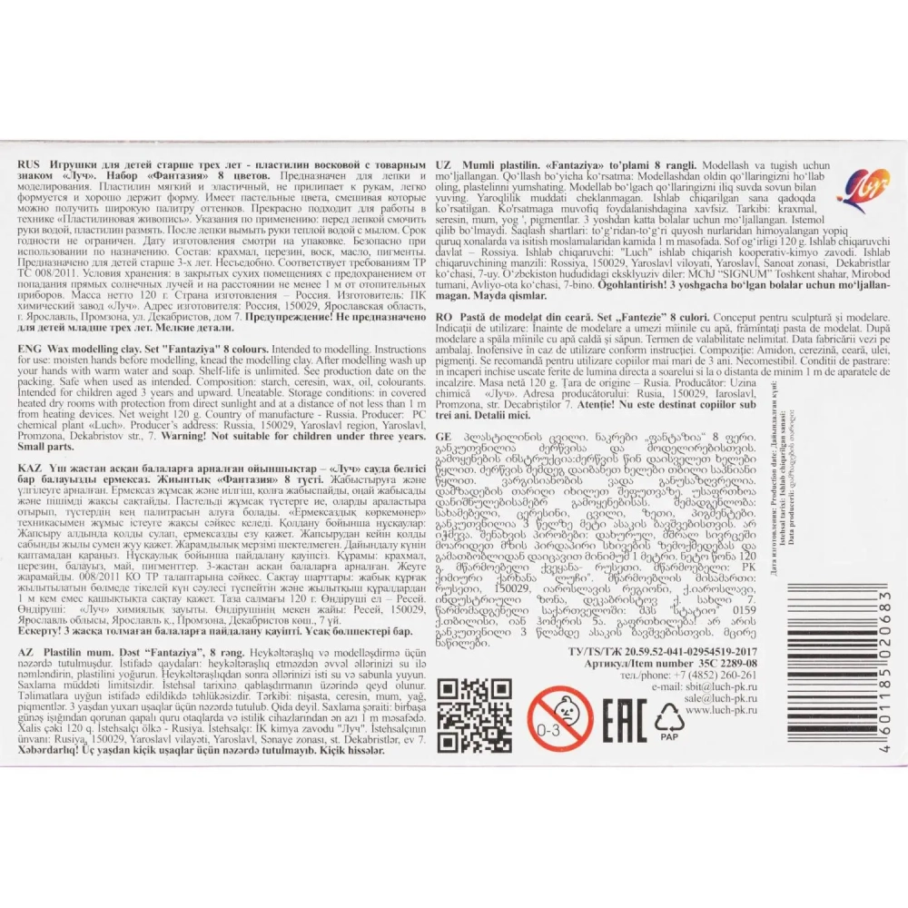 Пластилин восковой Фантазия пастельный,8цв,120г,набор стек 35С 2289-08