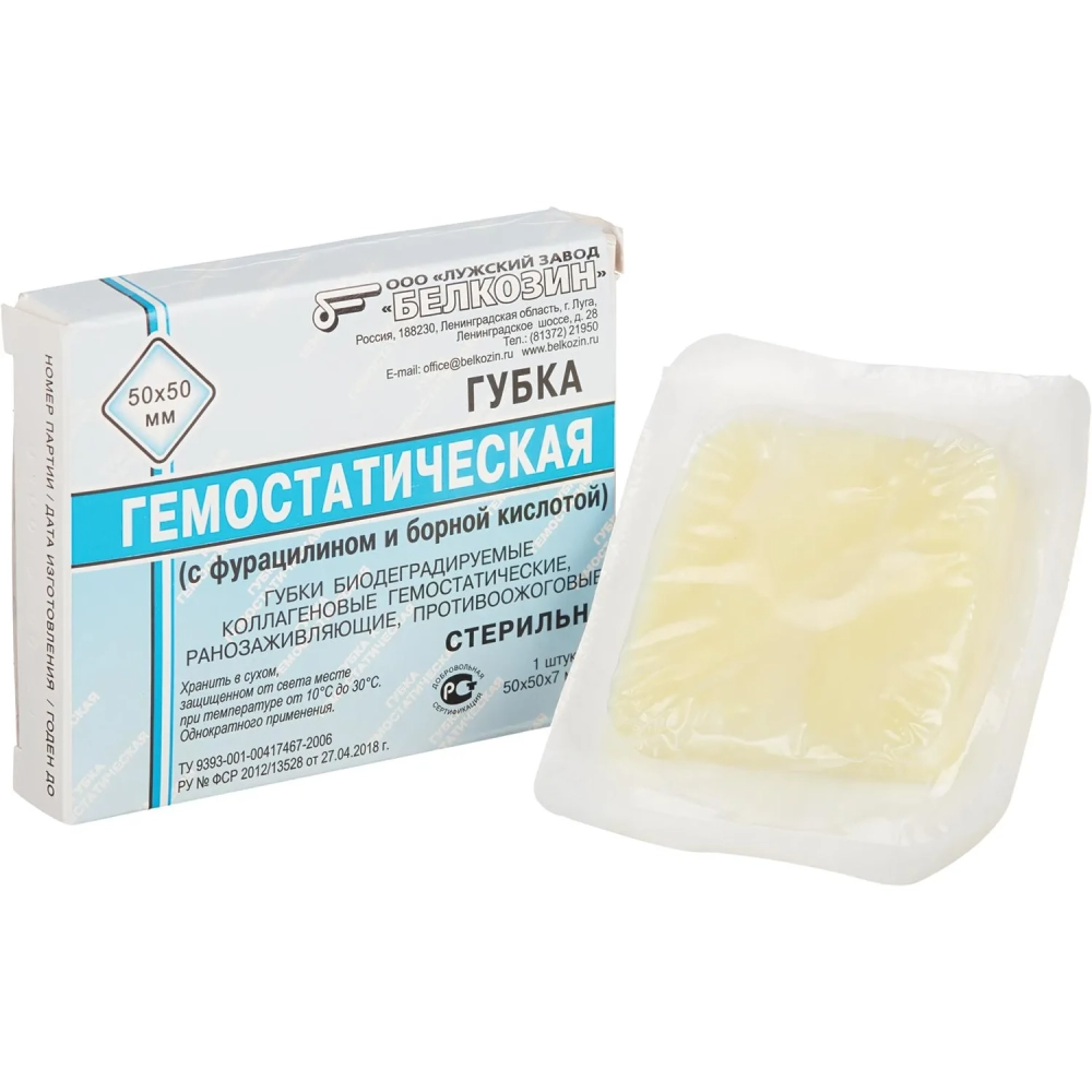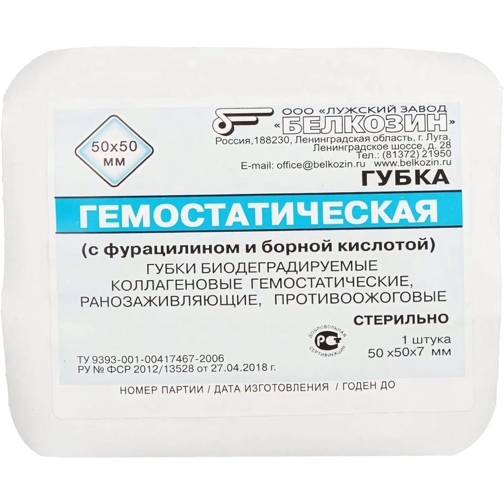 Пластина противоожоговая гемостатическая (губка) 50х50мм Белкозин