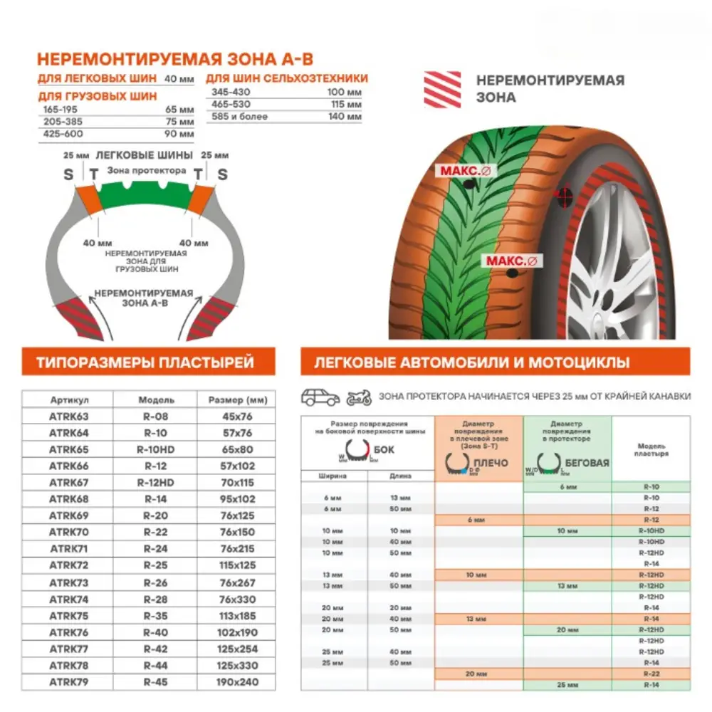 Они обеспечивают надежный и долговечный ремонт в любой ремонтопригодной зоне шины.