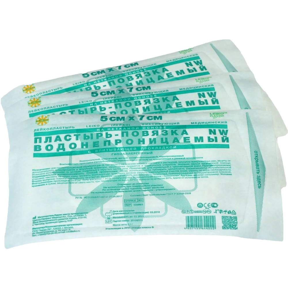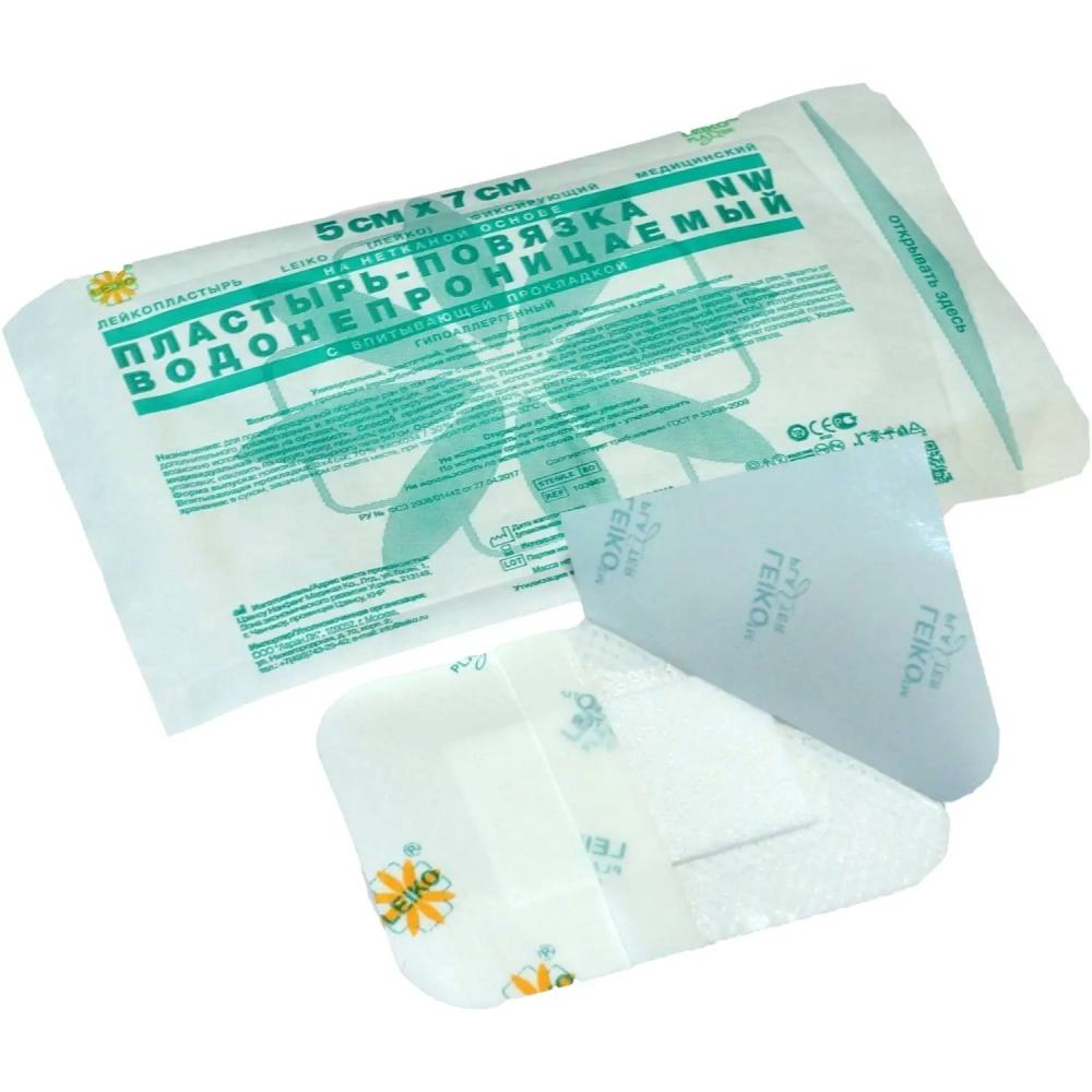 Пластырь-повязка неткан основа водонепрониц 5x7см 50шт/уп LEIKO